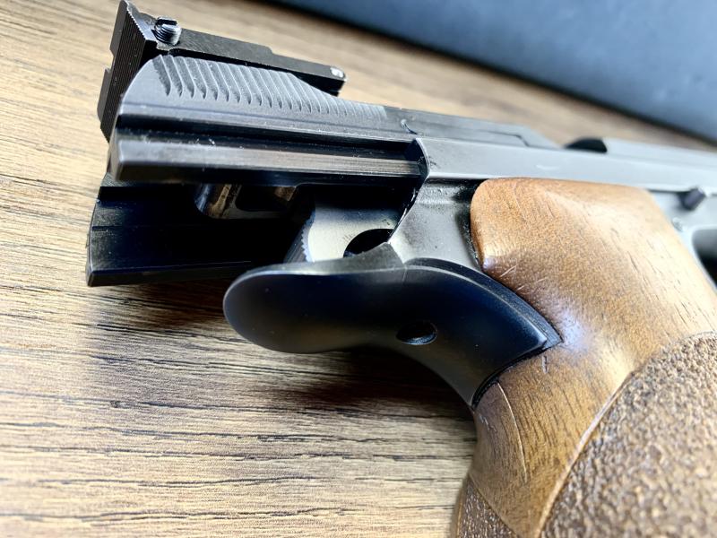 El disparador tiene un tacto ESPECTACULAR !! Personalmente, podría decir que es la mejor pistola de todas las que he probado en lo que se refiere al ajuste de su disparador..... Fijado en algo mas de 1.000 gr aporta la sensación de no superar los 500 gramos !! Ni siquiera la mía, tiene el disparador tan "fino" como esta unidad que ofrece mi amigo a la venta.