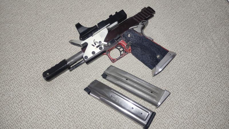 Vendo pistola STI EAGLE 5.5 para modalidad de IPSC OPEN, calibre 38 supercom, montura doble alfa con apollador , visor c-more, dos cagadores, uña estractora Eemann tech de muelles.