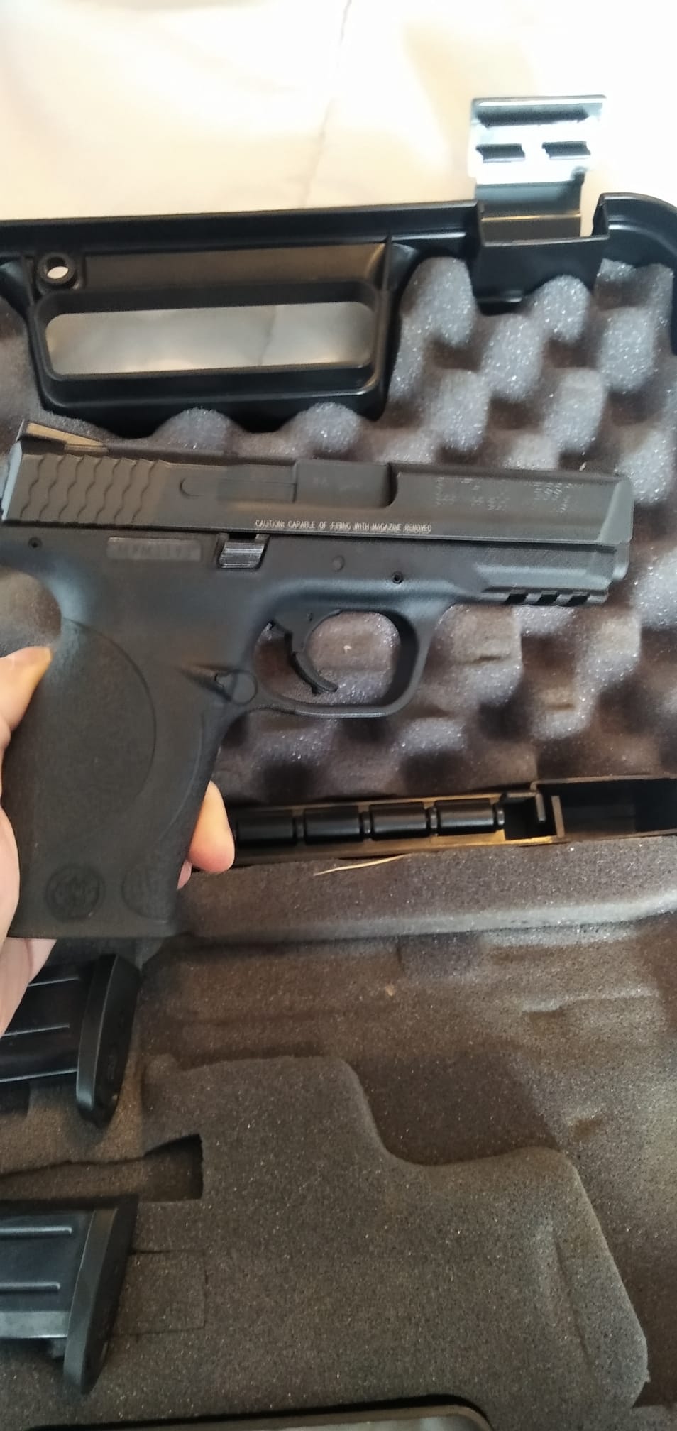 Hola un amigo vende esta pistola Smith Wesson MP9, , mi amigo no la ha usado y el anterior propietario muy poco, está en buen estado, se encuentra en Cantabria, ahora está guiada con A pero se puede guiar con F, es buen arma y se puede ver. Pide 300 euros por ella con dos cargadores y maletín.