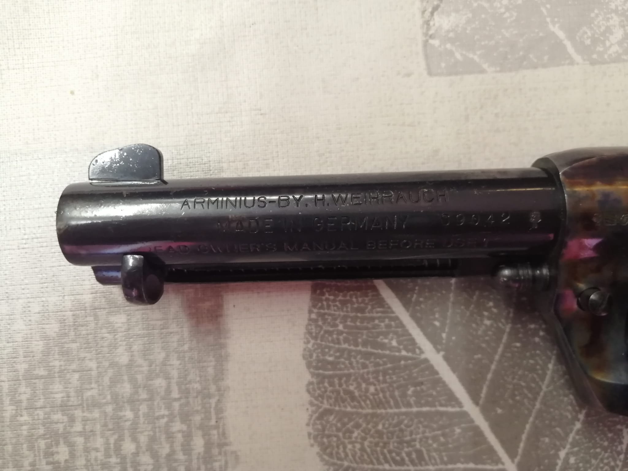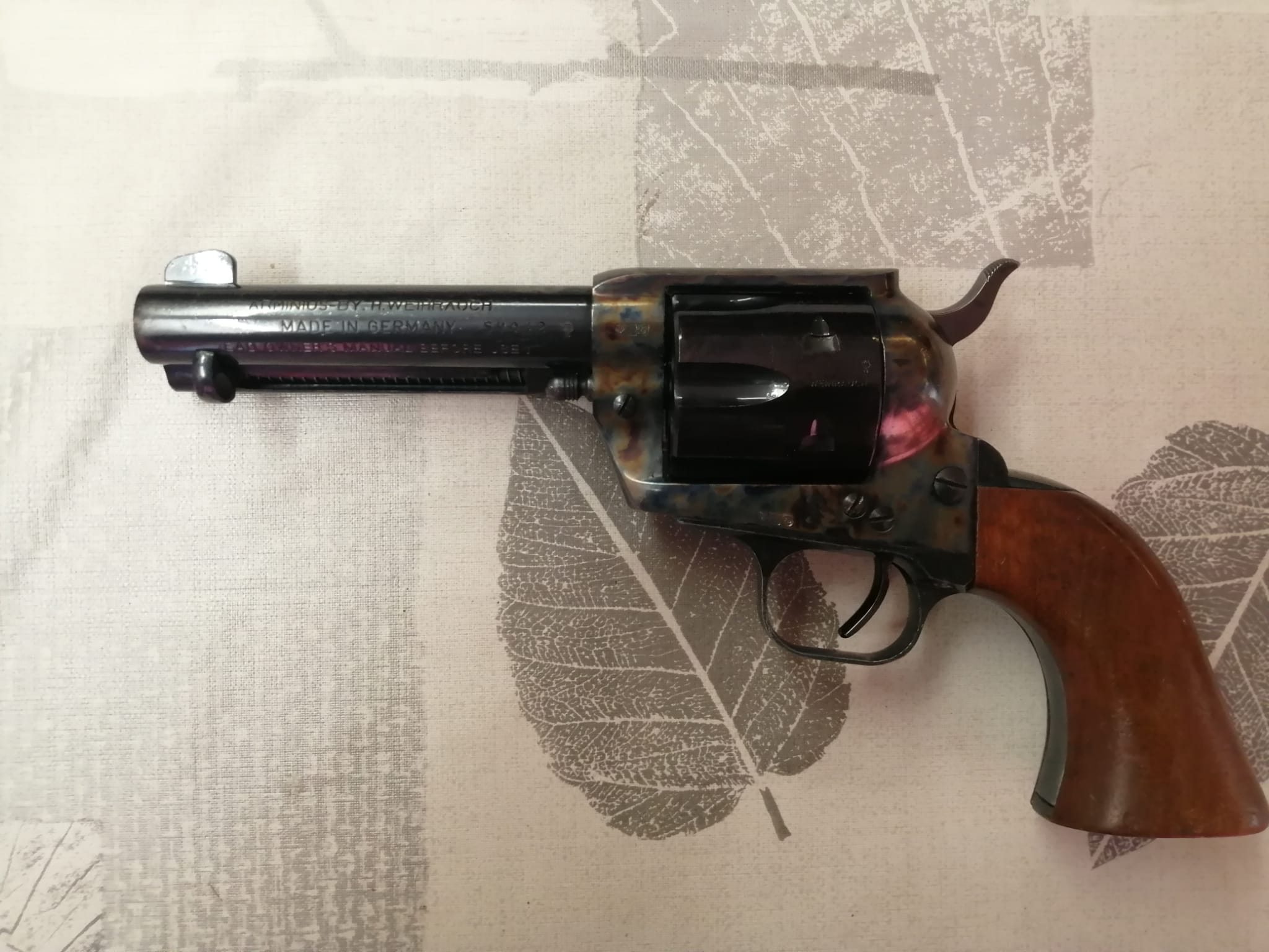 Se trata de un Arminius Wehirauch Western Six Shooter, replica de un colt single action army 1873, cañon de 4-3/4", calibre 44 remington magnum.