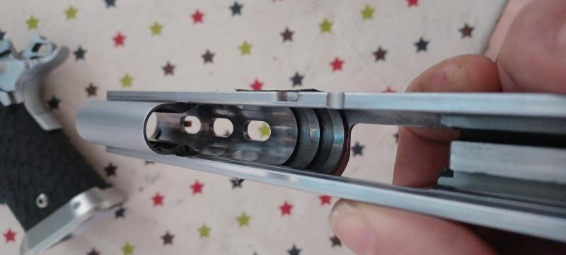 Perdona compañero , pero me gustaría saber si esta pistola que vendes , a sido empleada en categoría open , quizás por su anterior propietario, lo comento por la apreciación de los cuatro taladros en el lado izquierdo de la corredera, , gracias , un saludo.