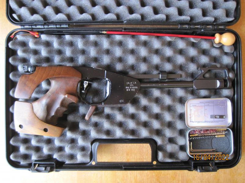 pistola de un solo disparo y para la modalidad de libre, tiro a 50 mts,