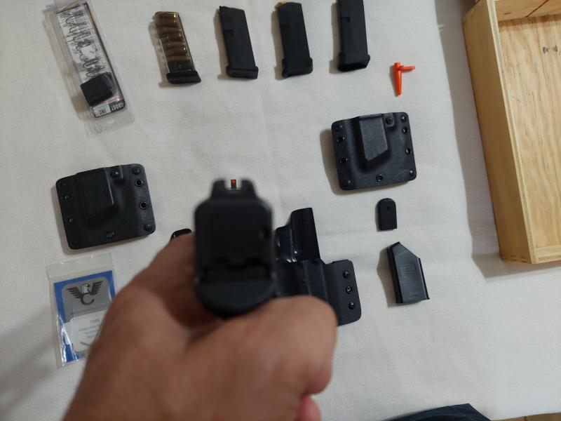 Como se va acercando la fecha del pase a la reserva y ya necesito quitármela, vendo una pistola GLOCK 43 de calibre nueve Parabellum en excepcionales condiciones, NO HA DISPARADO NUNCA ,la compre y a la caja fuerte, con sus dos cargadores de serie ,uno de ellos con extensor de dedo, Y y dos cargadores más, uno con extensión de dedo y otro ETS de 7 tiros.