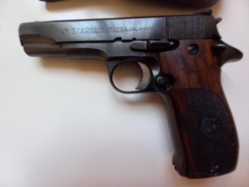 Estado perfecto tanto de funcionamiento como estético. Lleva dos juegos de cachas, las suyas originales y unas de madera que me hicieron a mano preciosas y totalmente nuevas, costaron caras. Dos cargadores y una funda astra original de cuero que le viene como anillo al dedo.