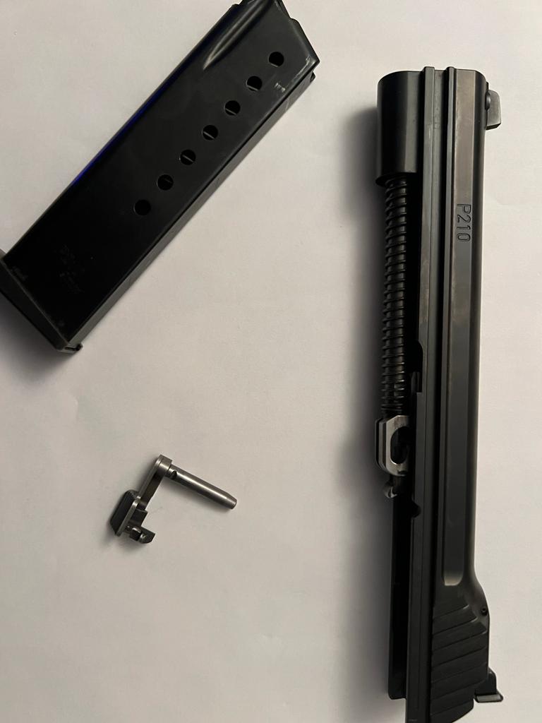 Vendo esta sig P210 de 5 pulgadas. El arma está en perfectas condiciones como se aprecia en las fotos. Incluye maletín, grasa y los papeles.