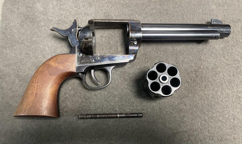 Armi chiappa 22lr cañon 4 3/4” Pavón negro y cachas sintéticas, actualmente en libro de coleccionista de replicas, solo se a tirado para probarlo puesto que lo compre para rellenar libro