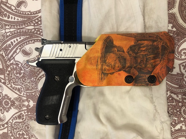La funda porta arma de la foto también se puede negociar si a alguien le interesa.