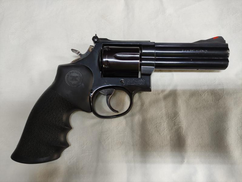 En la armería de Alicante donde compré el mío tienen también en venta este estupendo revólver Smith&Wesson modelo 586-1 revisado (con la M estampada encima del número de modelo), cañón de 4", calibre .375 MAGNUM, guiado en F.