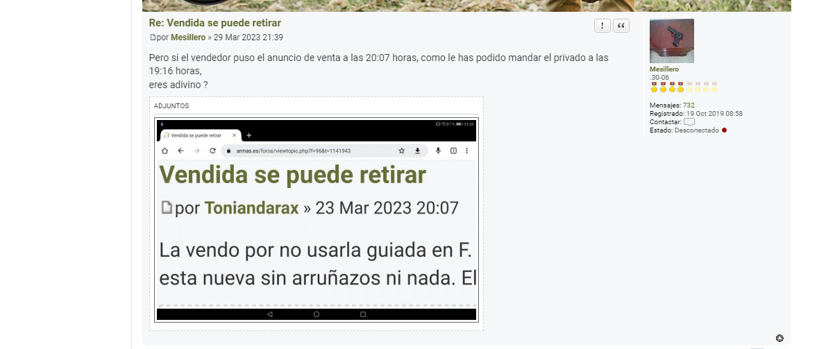 Pero si el vendedor puso el anuncio de venta a las 20:07 horas, como le has podido mandar el privado a las 19:16 horas,