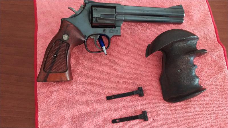 El calibre es 357 Magnum, aunque puede disparar 38 especial sin problema.