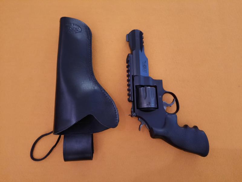 Se trata de un revólver creado en el prestigioso departamento Performance Center de la S&W, con aleación "Scandium" el esqueleto y acero inoxidable el tambor de ocho cartuchos y el cañón de 5" (12,70 cm). Cachas de caucho. Peso en vacío 1.030 grs. Miras intercambiables y carril Picantinny. Simple y doble acción.