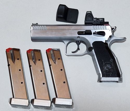 Pistola Tanfoglio 9 Para Stock II, con todas las piezas de la Xtreme puestas de origen, buen estado mejor verla, modalidad producción optic. está en Madrid y se puede probar, preferiblemente entrega en mano, envío por cuenta del comprador.