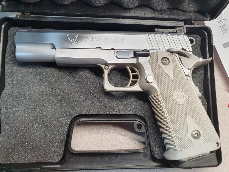 [b][b][/b][/b]Pongo a la venta esta STI Eagle 5.1 inox en perfecto estado. Excelente ajuste. Usada sólo en precisión, con 2 cargadores (uno STI original y otro SPS). Vendo por dejar la modalidad, ya soy mayor