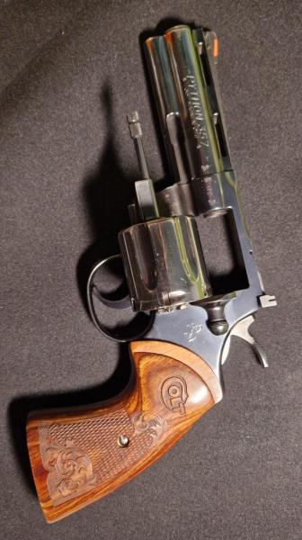 El revolver esta guiado en F. en muy buen estado (en las fotos no se aprecia el estado) con cachas originales de colt