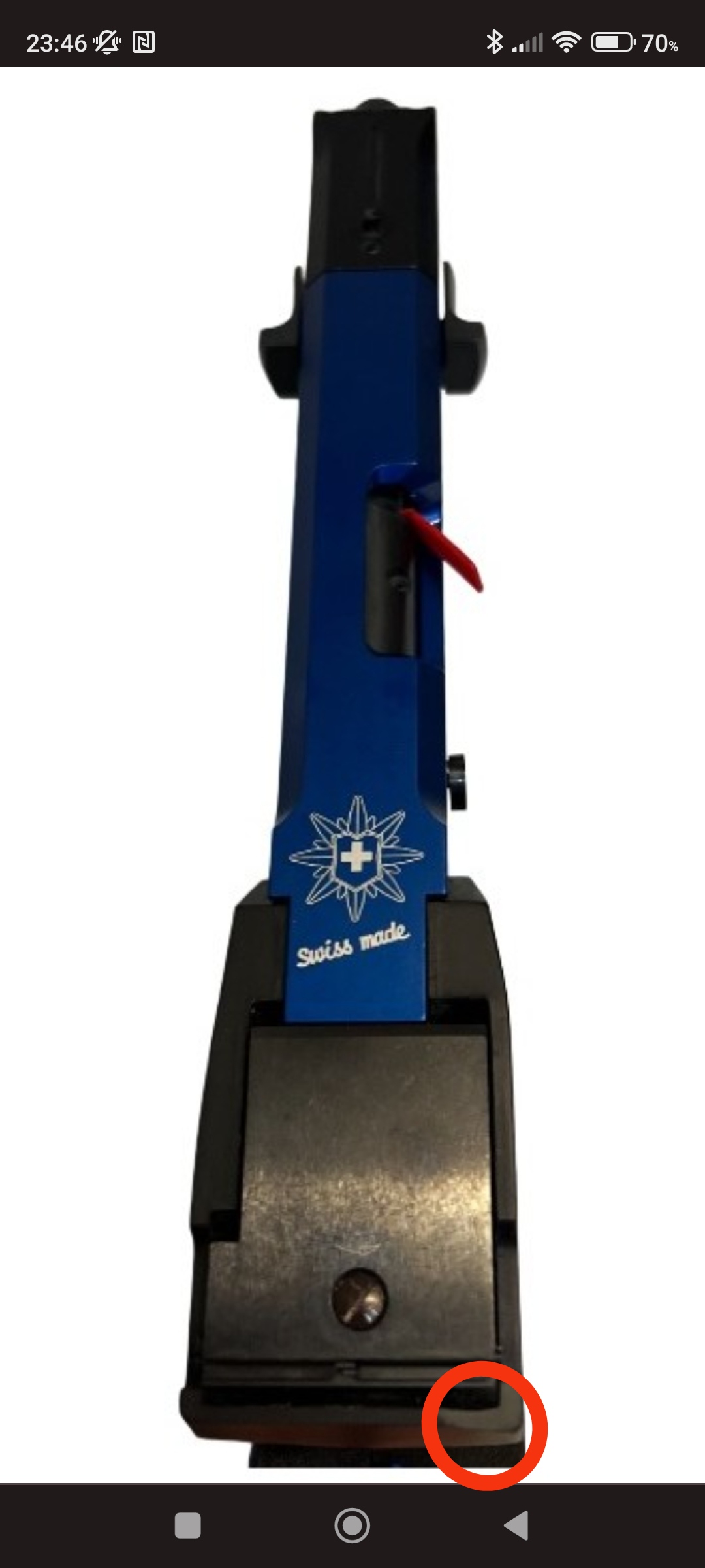 La cacha, en su parte superior cercana al punto de mira, le falta un trocito.