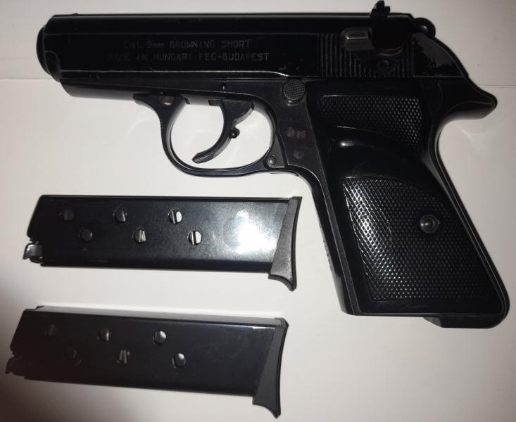 Pistola FEG, calibre 9 Corto, con dos cargadores, buen estado general.