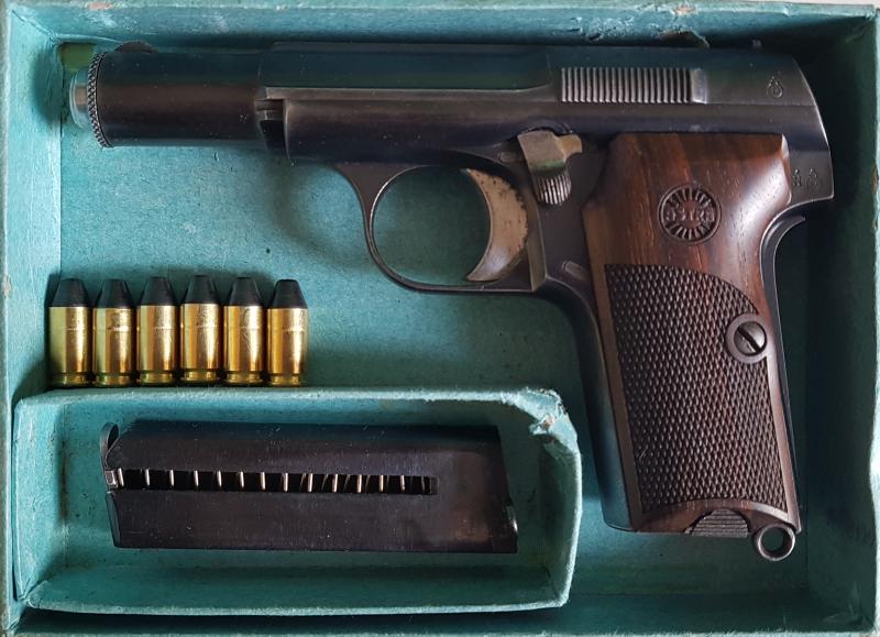Pavón original, 2 cargadores (1 es el original de 1935 y el otro uno de repuesto que debe ser de los años 70, nuevo, comprado en Top Gun). Cachas nuevas de nogal. Funcionamiento impecable. Arma robusta y eterna, todo un clásico, válido para tiradas de pistola histórica-militar.