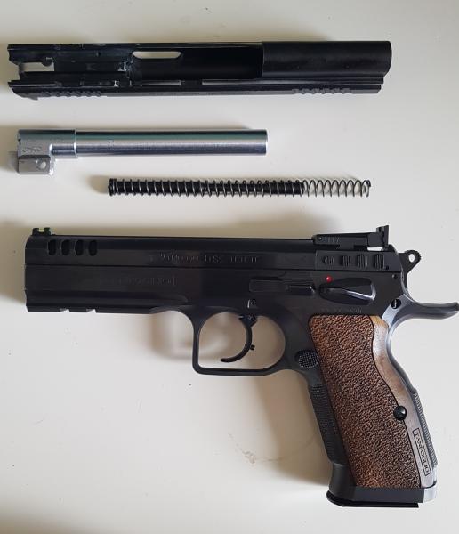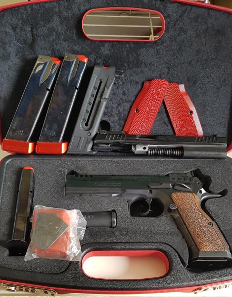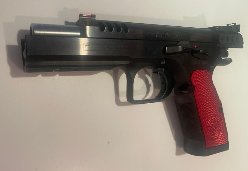 Por nuevo proyecto, ya pagado y de camino, y como no se puede tener todo, al menos en nuestro mundillo deportivo, voy a poner a la venta mi querida Tanfoglio Stock III de 5" y cañón poligonal, calibre 9mmPB, con ajustes y complementos de "Extreme" de Top Gun, lo que incluye: muelle real, afinado de disparador, 4 cargadores con tapetas rojas extreme +2, cachas rojas de aluminio, 2 puntos de mira en fibra (verde y rojo), además del original para precisión (no montado en las fotos), y alza trasera para IPSC (visible en las últimas fotos).