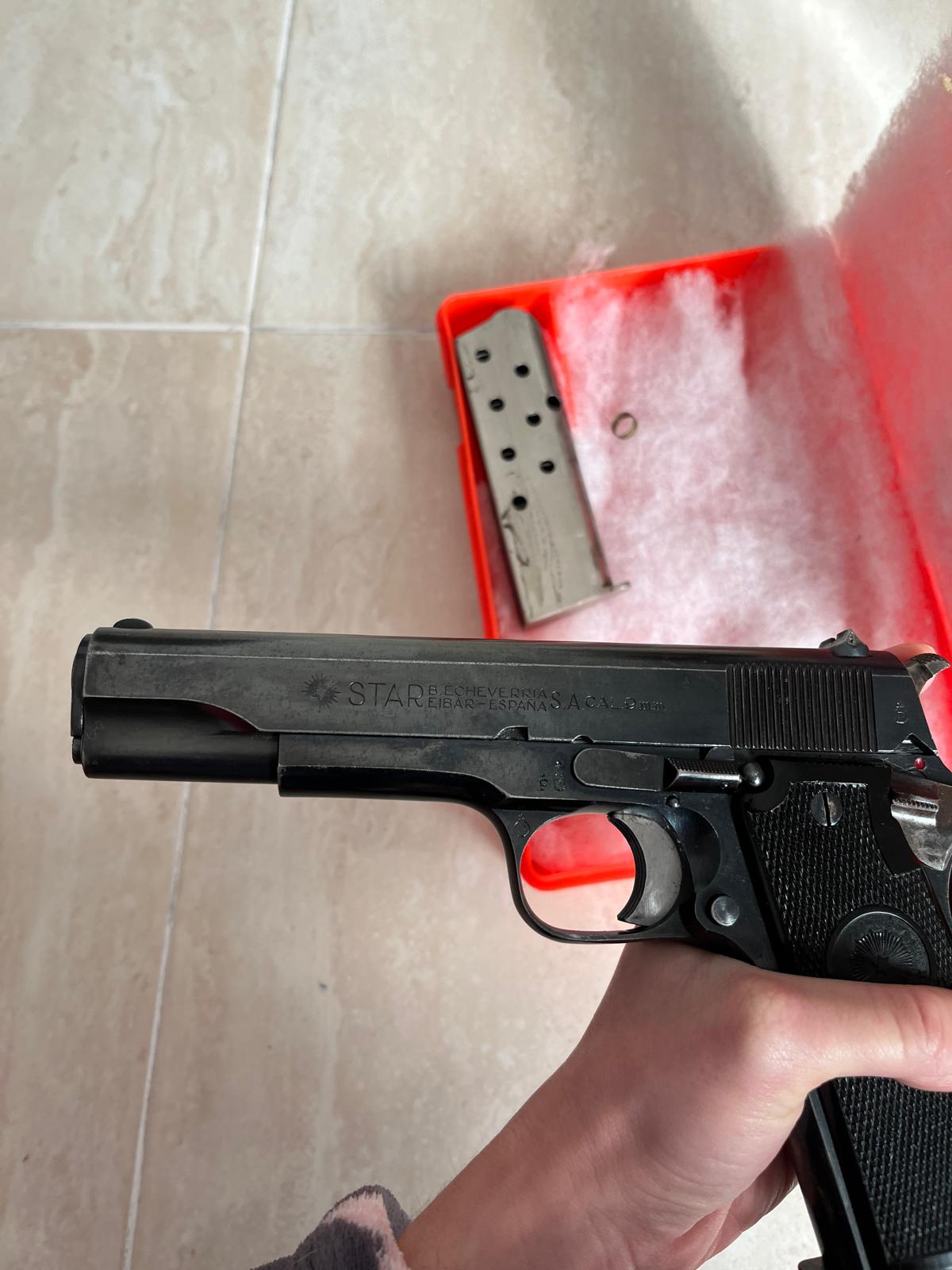 ...hoy me voy a rectificar yo mismo pues tampoco es cierto esto que dije pero si es cierto mi primera afirmación con respecto a modelo y año del arma. Es una Star A modelo Militar 1940 del año 1945 osea P y espero que el pueblo solucione sus problemas de vista. Navegando se encuentra uno varios de sus anuncios de este mismo arma y en concreto en uno de ellos pone foto de la parte baja de la empuñadura osea del brocal donde viene marcada A, osea el modelo y el numero de serie por el que se puede deducir el año de fabricación siempre y cuando no quiera,o vea o no diferencie el punzon del año. Le dejo su foto
