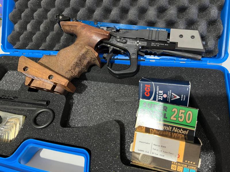 Por haber abandonado hace tiempo la práctica deportiva pongo a la venta esta magnífica pistola con ambos contrapesos de standard y velocidad e inmejorable estado. Talla M. Precio 1300€, saludos tl seis seis uno nueve ocho cinco nueve nueve siete. Se entrega con maletín libros cd herramientas etc. NO CAMBIOS.