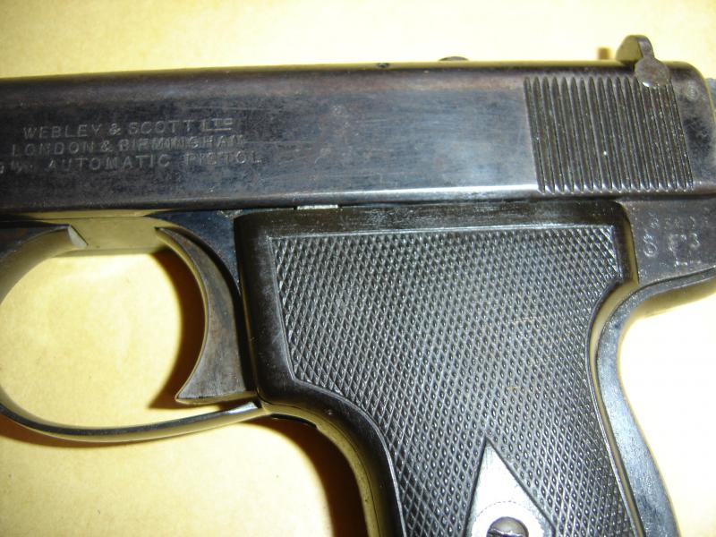 Hola amigos foreros, he adquirido esta joya, es una Pistola Webley & Scott. Las fotos añadidas son las originales del arma. Creo que es del 1909. El arma se encuentra en Cuenca. Está guiada como "F". Se encuentra en buen estado y va acompañada de funda y 2 cargadores. Precio a convenir ajustado a lo que el arma merece y para los que la conozcan, que aprecien su valor.