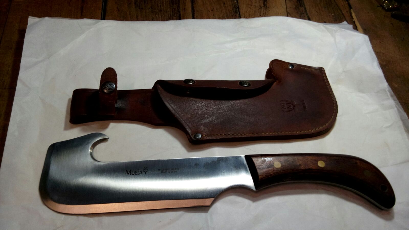 Completamente nueva estrenar, con mas de 30 años de antigüedad, viejo stock de fabrica. Empuñadura en madera oscura. Llamativa línea, gancho para desollar y no dañar la carne, con filo extremadamente poderoso, jamás he visto filo tan respetuoso. Funda de piel para proteger el acero de esta pieza poco vista y de una calidad extra en todos los sentidos, calidad, línea, belleza y equilibrio, una verdadera obra de arte de la manufactura cuchillera española.
