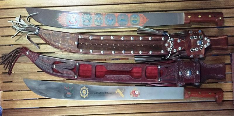 Se trata de dos machetes Conmemorativos de las Misiones de Asistencia que nuestra Guardia Civil presto durante los años 90 a diferentes Policías de algunos países centroamericanos.