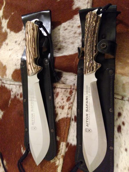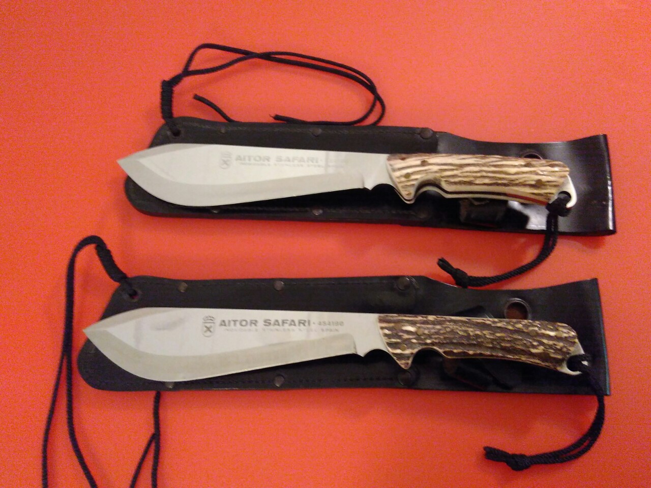 Cuchillos Aitor modelo Safari , en mango de asta Sambar. Años 80 Ermua.