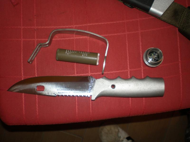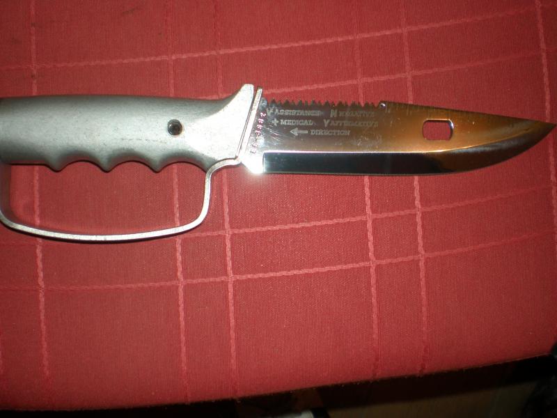 Bueno ya puedo poner fotos, el cuchillo esta nuevo no a cortado o quizás papel, guardado en cajón, fallos no tengo la caja, la pintura de la empuñadura esta tocada como se vera en la foto, es de sobarlo no de usarlo, si en la hoja se ve algo es fallo de la foto, el tubo de supervivencia esta lleno pero no lo abro pues sale el polvo de las cerillas o no se que es pero esta en su estado original, al igual que la pintura que es fácil de arreglar, lijar y pintura al horno.