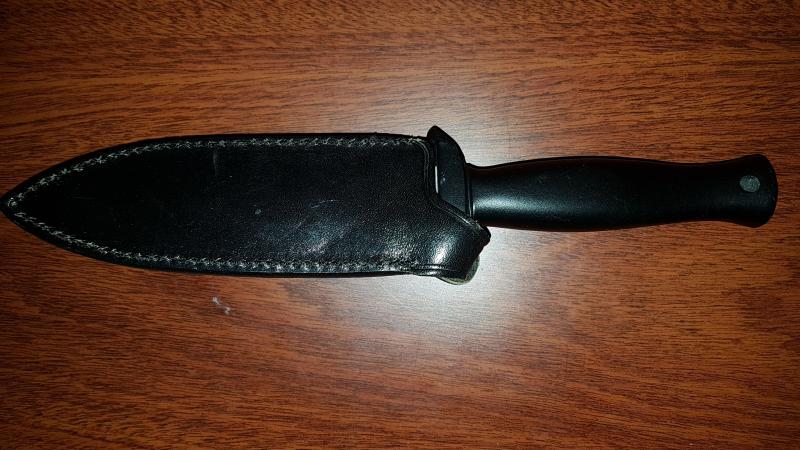 Funda de cuero, perfecto estado, pinza metálica para cinturón o bota, 13 cms. de hoja, casi seguro Aitor Ermua.