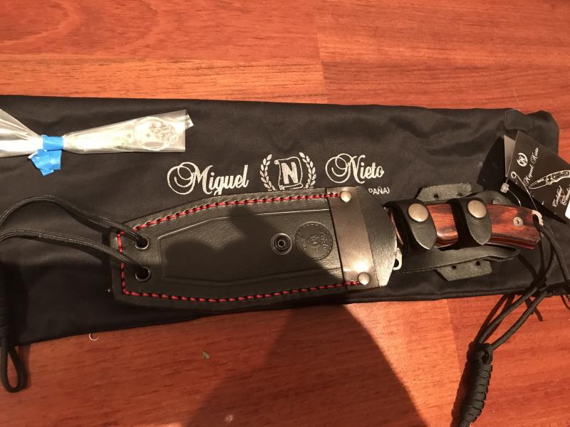 Con su etiqueta,funda para el polvo de Miguel nieto y llavero de cuchillo Miguel nieto.Precio 100 eur envio A parte es el nuevo modelo de acero Bohler,es uno de los de mas calidad de la casa,el de acero de vanadio es con filo cóncavo y este es el filo plano, para batonear, etc,con su caja original