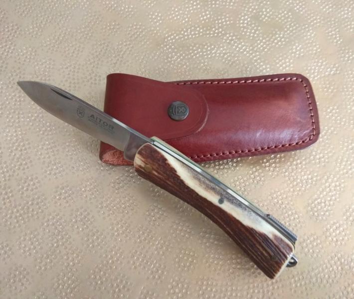 Destaco de esta pieza la empuñadura en sambar , por su belleza y rareza en tonos jaspeados.