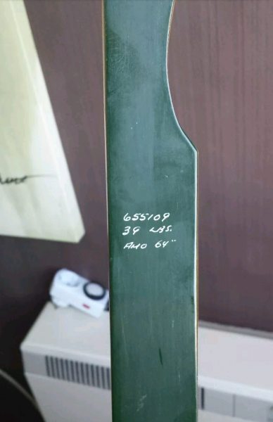 Es precioso, de una pieza con palas reforzadas compuesta. Siempre destensado y sin uso. Como nuevo. Mide 64" 28" de apertura y 34 libras de tensión. La sensación de tiro es impresionante, para quien le guste lo auténtico. Fabricado en NEWMARKET, Ontario, CANADA. 190 euros. Saludos.