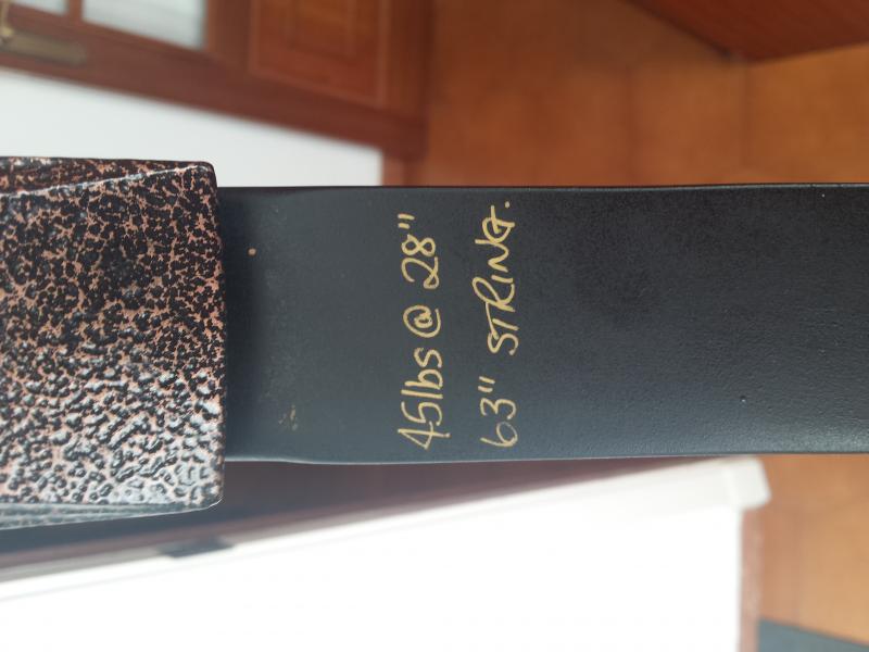 Empuñadura de magnesio, palas compuestas de carbono, regulable en potencia...63" de largo, 29" apertura y 45 libras de tensión. Siempre guardado en su caja, sin usar y como nuevo. 130 euros. Saludos.