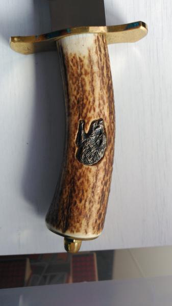 Se vende cuchillo de remate Muela Magnum hoja de 24cm, mango de asta de ciervo con grabado de jabalí, nunca usado.Con su funda de cuero, Ideal para monteros o rehaleros,esta en Cantabria.Precio 80 euros. En estos momentos está reservado, si hubiera cualquier cambio, aviso.