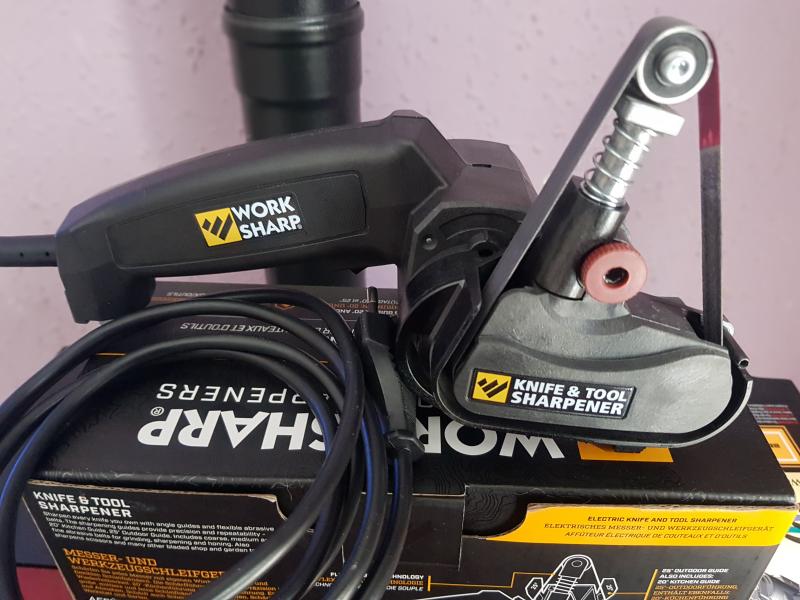Adaptador de corriente/componente de cinta de afilado/guía de cuchillos 40° y 50° / Kit de correa abrasiva P80 - P220 - 6000 / Guía rápida de inicio /
