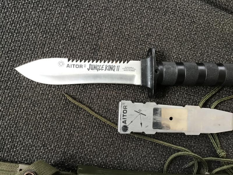 El Jungle KIng, en muy buen estado tambien, lo unico que faltan , las gomas del tirachinas,un arponcito que traia dentro de la funda y el bote de accesorios del interior del mango