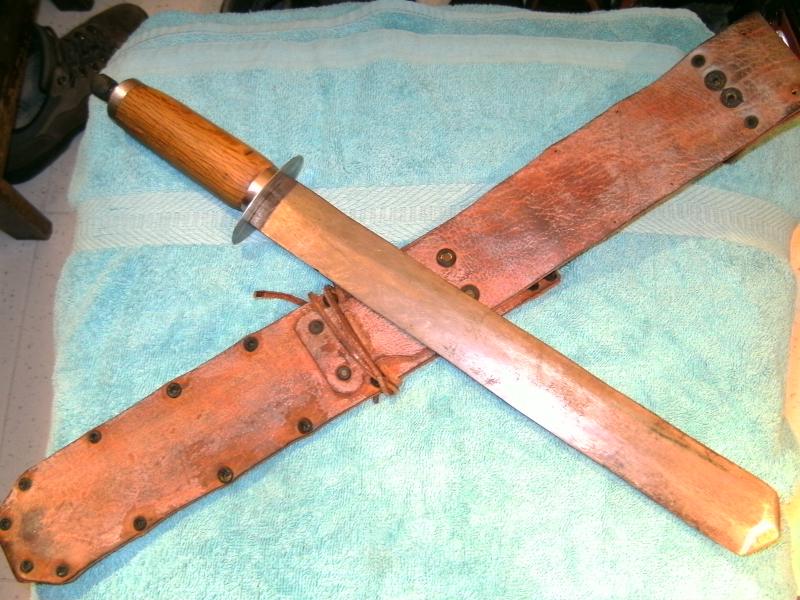 Nº 5 - Es un machete de fabricacion artesanal, Hecho con una lima de 14" forjada con mango de encina y funda de cuero, mide 47,5 cm. con hoja de 33 cm. y esta afilado, precio 65 Eu.
