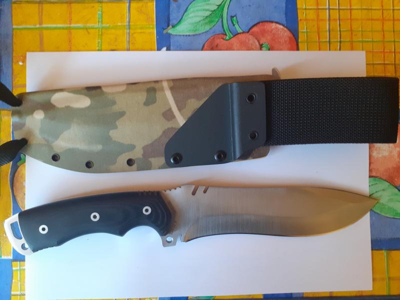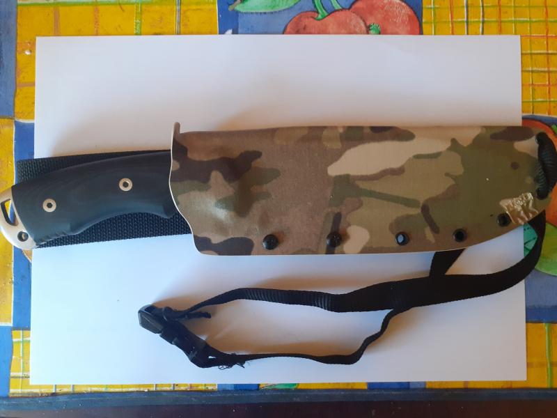 Con motivo de financiar otro proyecto pongo a la venta este Cudemán Boina verde de acero Bohler N695 y cachas de micarta negra. El cuchillo está en perfecto estado y casi sin uso. Lleva su funda original de cuero negro y, en lugar de la piedra de afilar original, lleva una piedra Fallkniven DC3, que es bastante mejor para mi gusto. El conjunto también incluye una funda Kidex en color camouflaje específica para el Boina Verde, de porte en tahali, hecha por Edu ( El sastre del Kidex ) de Fundas RK, que costó 60 E.