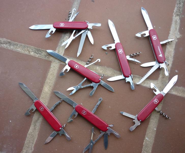 Vendo parte de mi colección de navajas Victorinox, algunas tienen un uso ligero, la mayoría de los útiles están sin utilizar, parte de ellas las tengo duplicadas, los modelos son : Mountaineer, Camping, Huntsman y Spartan.