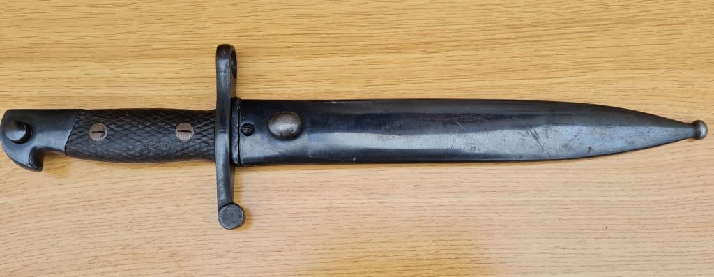 cuchillo-bayoneta que, en principio, fue diseñado para su empleo en los Máuseres modelos 1893 y 1916, de uso en las Fuerzas Armadas. Sin embargo, para su empleo en el mosquetón Máuser modelo 1943, hubo que fabricar una pieza específica para acoplar en la guía situada bajo el cañón.
