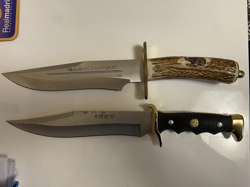 Entre ellos destacan especialmente un par de cuchillos grandes, un Muela Mágnum 23 con algo de uso pero en unas condiciones muy buenas y un Nieto AN58 sin estrenar.