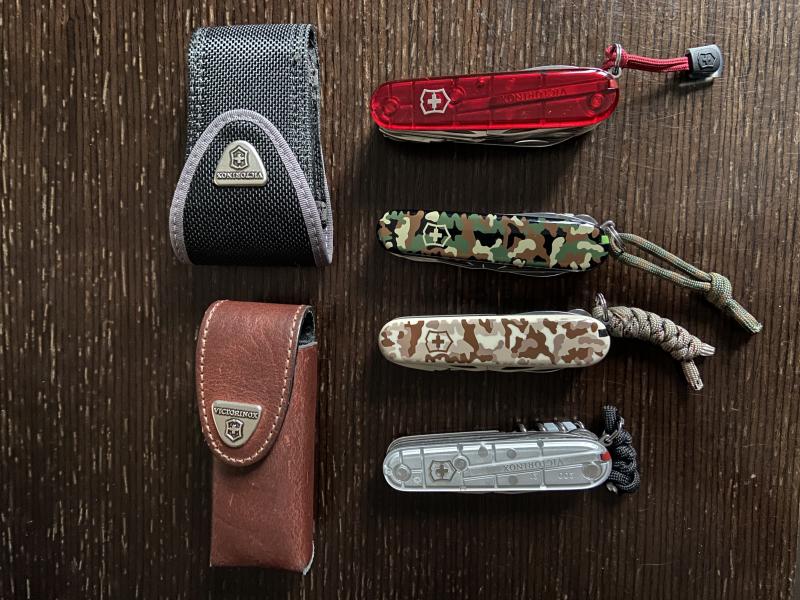 2 juegos de cachas rojas, landyards 1 bote de aceite de mantenimiento Victorinox y palillos y pinzas originales incluidos. (en las fotos llevan palillos y pinzas en color a juego con las cachas)