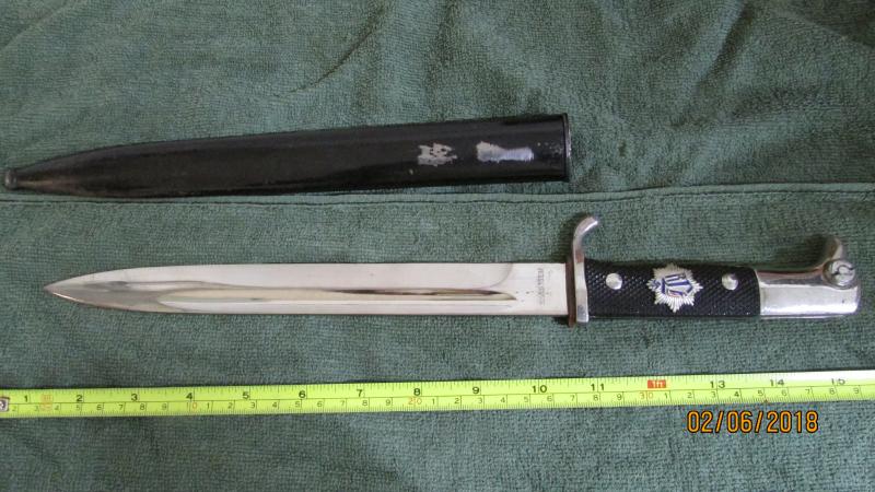Pues que vendo lo que veis, Bayoneta de la RLB en bastante buen estado, no soy especialista asi que no me pregunteis demasiado, jeje, La he comprado en Alemania en Herman Historica. Saludos. precio 125euros 100 euras portes incluidos en peninsula.