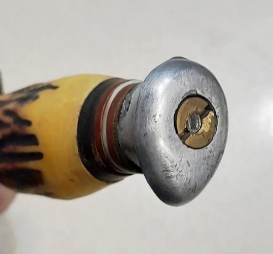 Estado muy bueno, sin marcajes, pomo de baquelita simulando asta de ciervo, sin oxido aparente... procedencia Portugal probablemente importado de Shefield por su apariencia.26 centímetros.Espiga remachada.