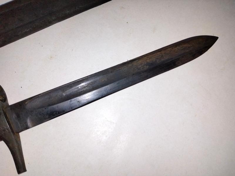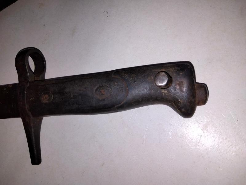 la bayoneta esta usada , con grasa seca , muy sucia pero bastante entera y sin oxidos , con su funda