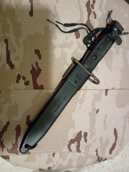 Bayoneta M7 US para fusil M16, con funda modelo M10 fabricada por colt en muy buen estado . Marcajes ej la hoja colt .