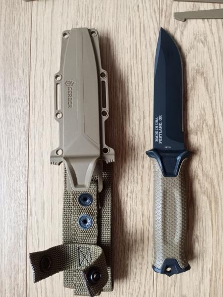 Vendo Gerber StrongArm Coyote con filo Liso, hoja fabricada en acero 420HC con revestimiento cerámico negro. Empuñadura fabricada en polímero de color coyote con pomo rompecristales. Incluye funda de kydex con sistema molle para poder portar tanto horizontal como vertical