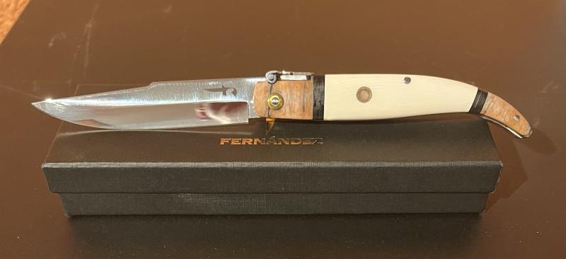 Marfil de mamut ,hueso jirafa y ébano en las cachas…y la hoja en acero inox 440 a espejos ..