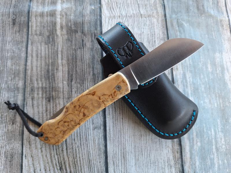 Helle Dokka - acero triple laminado, mango de abedul, caja original - 90€